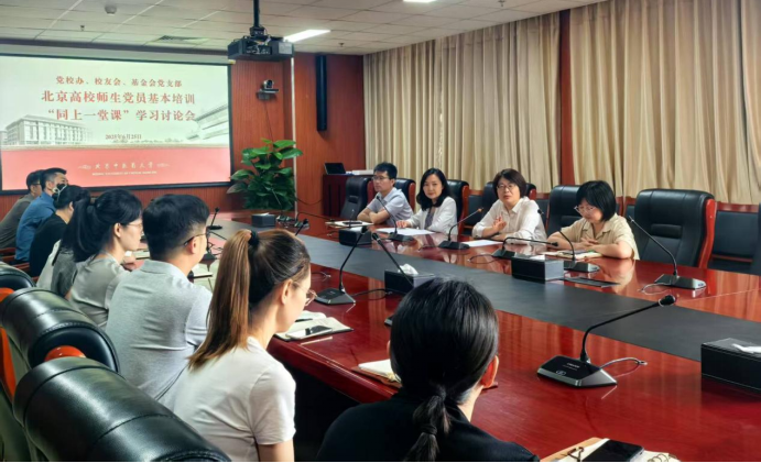 为深入学习贯彻落实全国教育大会精神、深化党员基本培训实效,6月25日机关党委党校办、校友会、基金会党支部在良乡校区西院综合楼396会议室召开北京高校师生党员基本培训“同上一堂课”学习讨论主题党日活动,会议由党支部书记郭辉主持,支部全体党员参加活动。